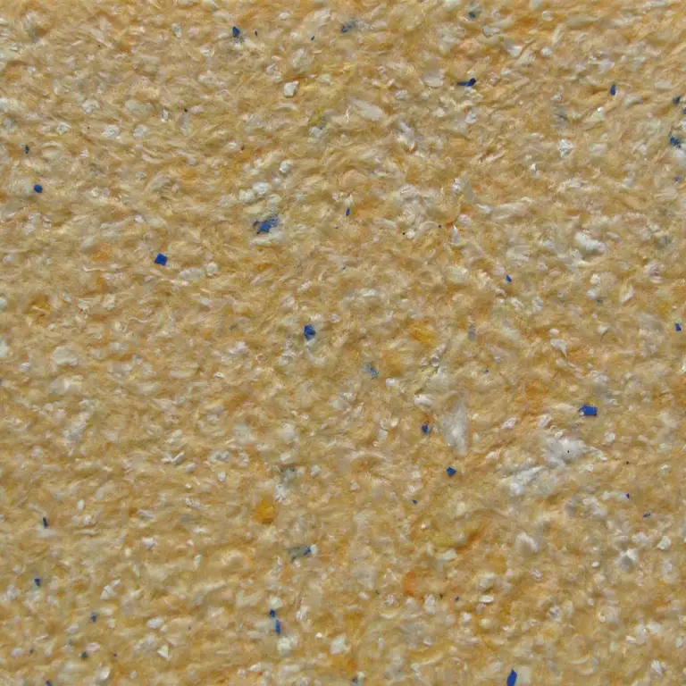 Mit unserem Baumwollputz in Hellorange mit Blau- und Silberchips & Glimmer setzt du lebendige Kontraste mit natürlichem Charme und dezentem Glanz.